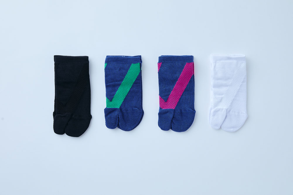 ・ソックスの裏側は特殊なサポート構造で編み上げており、糸の切り替え部分は、糸の切れ目が出ている状態です。