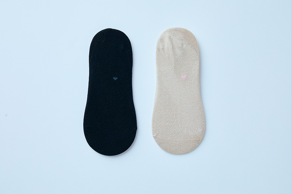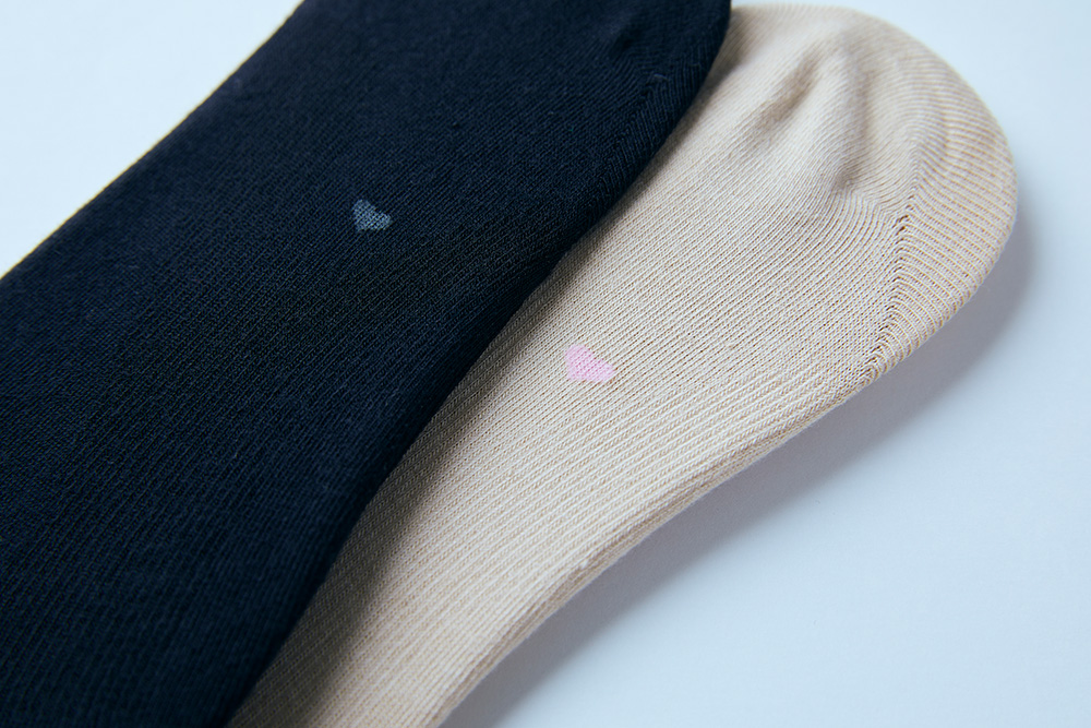 本製品は左右専用ソックスです。左足の足底にハートマークの刺繍があります。
