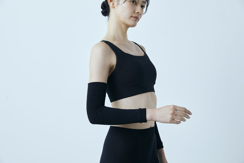 手首に本製品をためてから、少しずつ肘を超える位置まで引き上げてください。